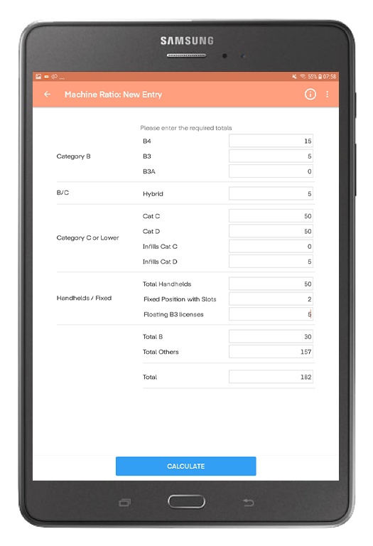 Machine Ratio Recording is a quick and easy tool to help Operators and Venues calculate their machine ratio and also provide evidence and record the ratio for future use.